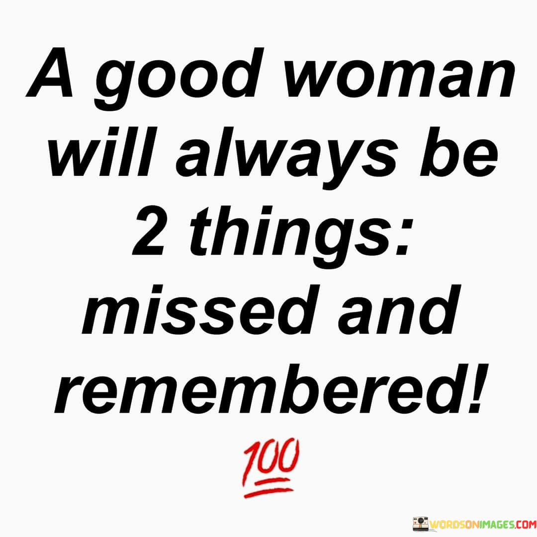 This poignant statement acknowledges the lasting impact and significance of a good woman in people's lives, even after she is no longer present.