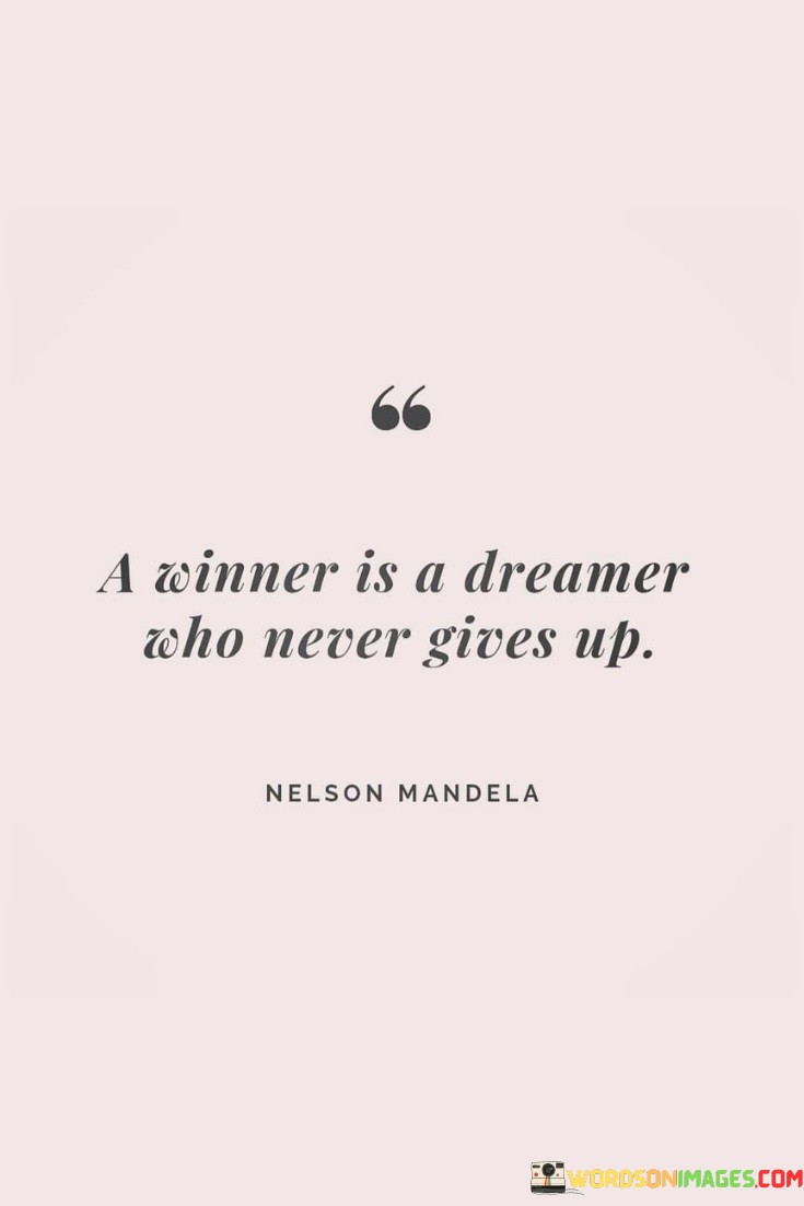 The quote celebrates the persistence of those who pursue their dreams. In the first paragraph, it introduces the term: "a winner is a dreamer." This suggests that winners are individuals who envision and aspire to achieve their goals.