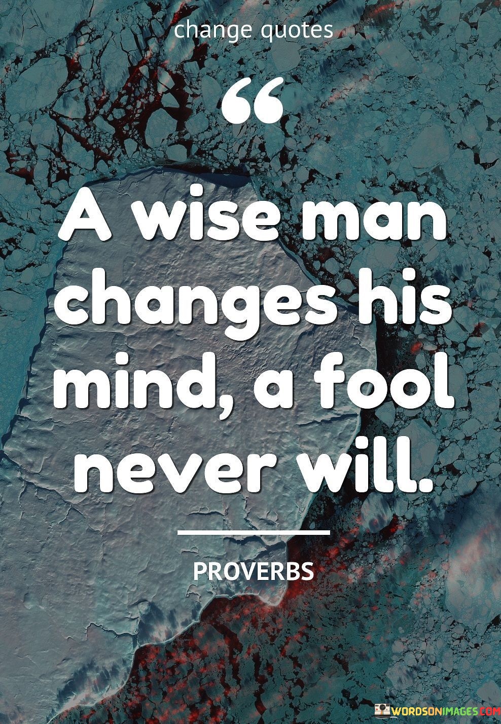 The quote "A wise man changes his mind, a fool never will" emphasizes the importance of open-mindedness and the willingness to adapt one's beliefs and opinions based on new information or experiences. Wisdom is not static; it evolves with time and learning. A wise person understands that holding onto rigid beliefs, even in the face of contradictory evidence, can hinder personal growth and understanding. Instead, they are receptive to new ideas and perspectives, and they are not afraid to reconsider their views when presented with compelling evidence or logical reasoning. On the other hand, a fool is characterized by stubbornness and an unwillingness to change. They may cling tightly to their existing beliefs, even when confronted with overwhelming evidence that contradicts their position. This closed-mindedness can lead to a lack of personal growth and a resistance to new knowledge or insights. The ability to change one's mind is a sign of intellectual maturity and humility. It demonstrates a willingness to acknowledge that one's previous beliefs might not have been fully informed or accurate. By embracing new information and incorporating it into their understanding, wise individuals continually expand their knowledge and enhance their decision-making abilities. Moreover, the willingness to change one's mind fosters open dialogue and collaboration. It encourages constructive discussions, where different perspectives can be shared and evaluated without fear of judgment or ridicule. This approach to communication can lead to greater understanding, empathy, and the possibility of finding common ground even in areas of disagreement. In contrast, an individual who stubbornly clings to fixed beliefs may find it challenging to engage in meaningful conversations with others, as they may be unwilling to consider alternative viewpoints. In conclusion, the quote "A wise man changes his mind, a fool never will" serves as a reminder of the importance of intellectual flexibility and humility. Wisdom lies in being open to new ideas, learning from diverse experiences, and being willing to adapt one's beliefs based on evidence and reasoning. By embracing change and being receptive to new knowledge, wise individuals continue to grow and evolve throughout their lives. On the other hand, a closed-minded approach can hinder personal growth and lead to missed opportunities for learning and understanding.
