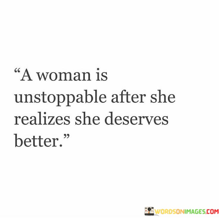 A woman is unstoppable after she realizes she deserves better. When she comes to the realization that she deserves to be treated with respect, love, and kindness, there is no force that can hold her back.