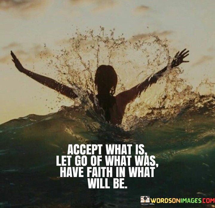 Cultivating hope and trust. The quote concludes by highlighting the significance of having faith in the future. It implies that by accepting the present and releasing the past, one can create a positive mindset that fosters optimism and trust in the unfolding of what is to come, fostering a sense of hope and anticipation.