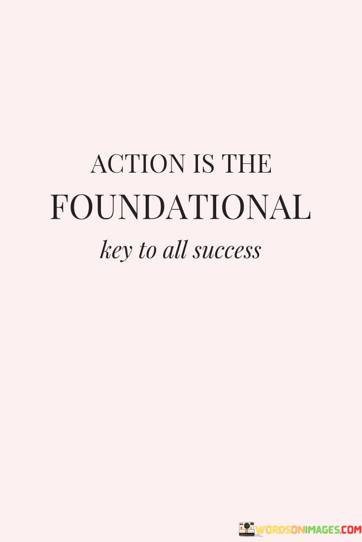 In summary, this quote serves as a reminder that success is built upon the cornerstone of action. It encourages individuals to take the first step and continue to take actions aligned with their goals, as it is through these actions that they lay the foundation for their success.