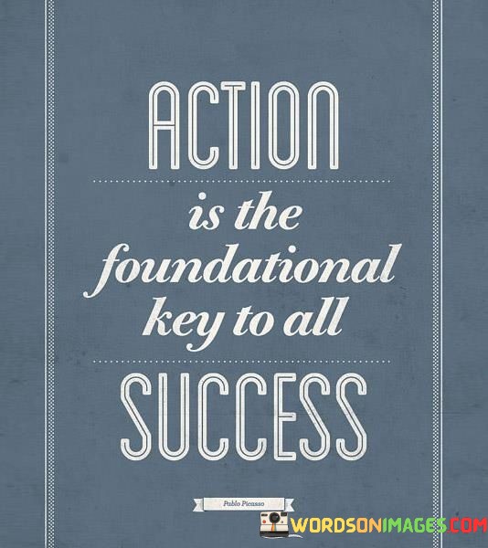 The quote emphasizes the importance of taking action. "Action is the foundational key to all success" suggests that the starting point for achieving any form of success begins with taking concrete steps and making things happen.