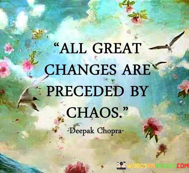 This powerful quote reminds us that transformation and progress often emerge from moments of upheaval and disorder. Change can be uncomfortable, and it is during times of chaos and uncertainty that we are challenged to adapt, grow, and create something new. It is in these turbulent moments that opportunities for growth, innovation, and positive transformation are born.