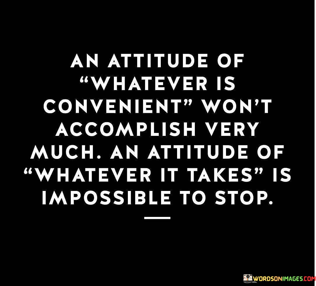 This quote highlights the importance of having a balanced and realistic attitude when pursuing goals or tasks. "An attitude is whatever is convenient won't accomplish very much" suggests that adopting an attitude of convenience or taking the easy route is unlikely to lead to significant accomplishments.