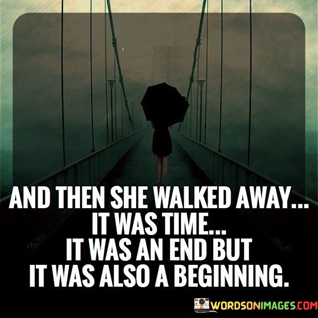 In essence, the narrative captures the essence of embracing change. "And Then She Walked Away. It Was Time. It Was An End, But It Was Also A Beginning" portrays the cyclical nature of life and the potential for growth and fresh opportunities with each ending.
