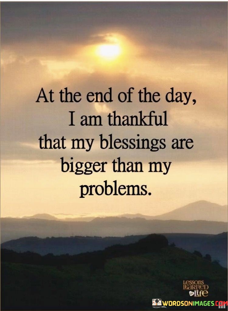Ultimately, the quote imparts a valuable life lesson. Gratitude can serve as a guiding principle in dealing with life's ups and downs. Recognizing the scale of our blessings relative to our problems can create a sense of perspective, helping us to cultivate a positive attitude and face challenges with greater strength and resilience.