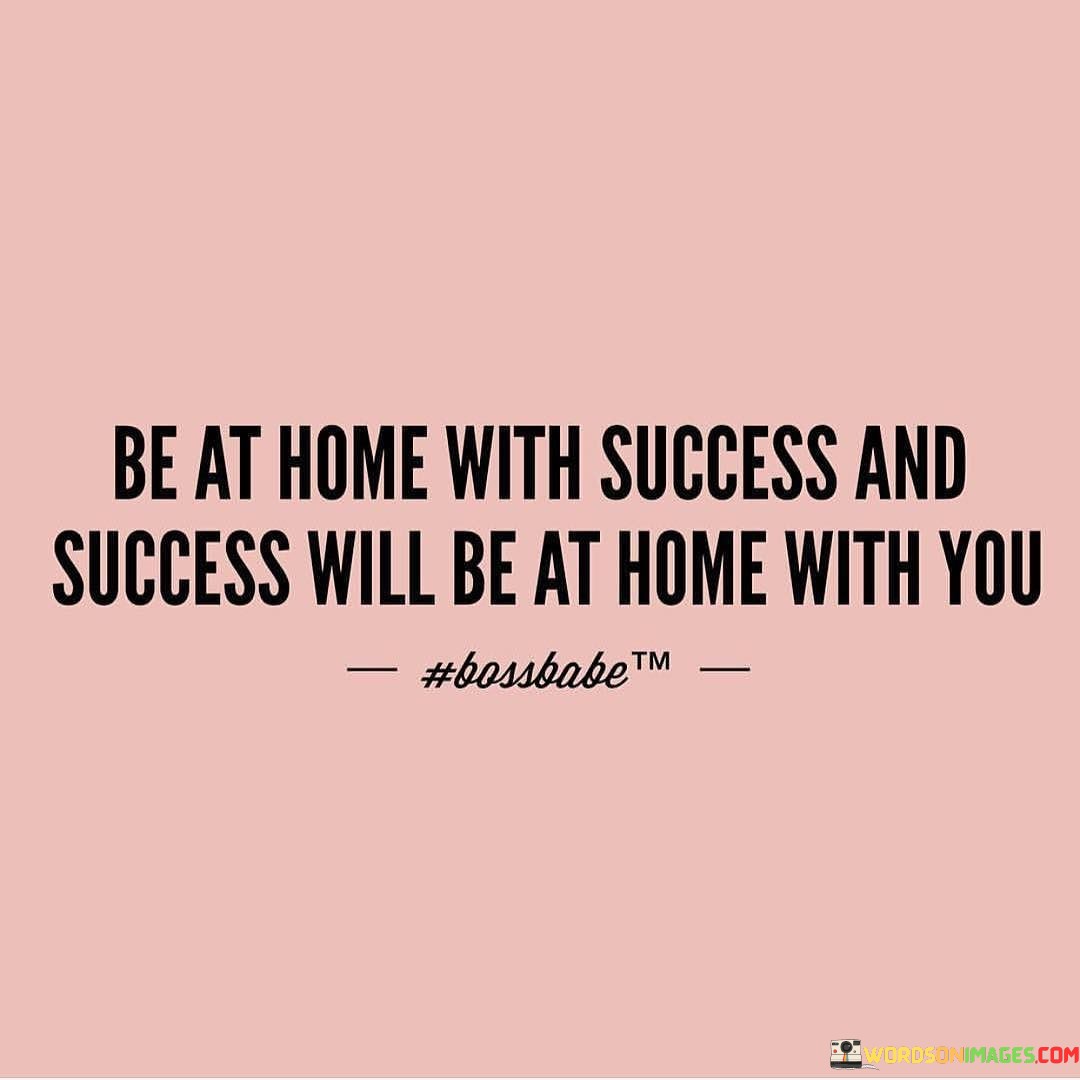 The statement underscores the concept of alignment. It implies that being comfortable with the idea of success attracts it into one's life. This sentiment encourages individuals to foster a positive and receptive mindset.