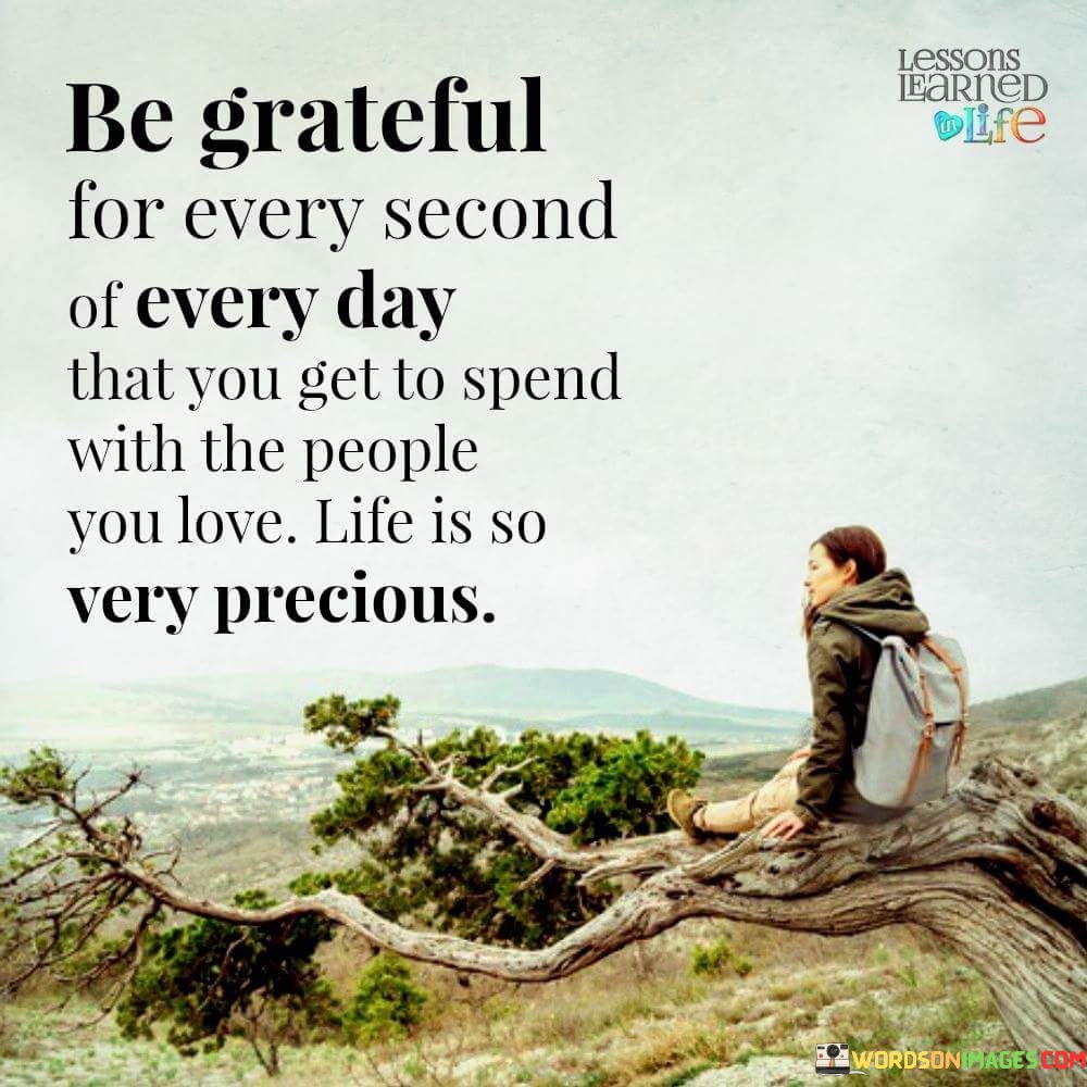 In this quote, the essence of gratitude is beautifully captured. The message emphasizes cherishing every fleeting moment spent with loved ones. Life's precious nature is highlighted, urging us to recognize the value of each second. By expressing gratitude for these moments, we cultivate a profound appreciation for life's blessings.