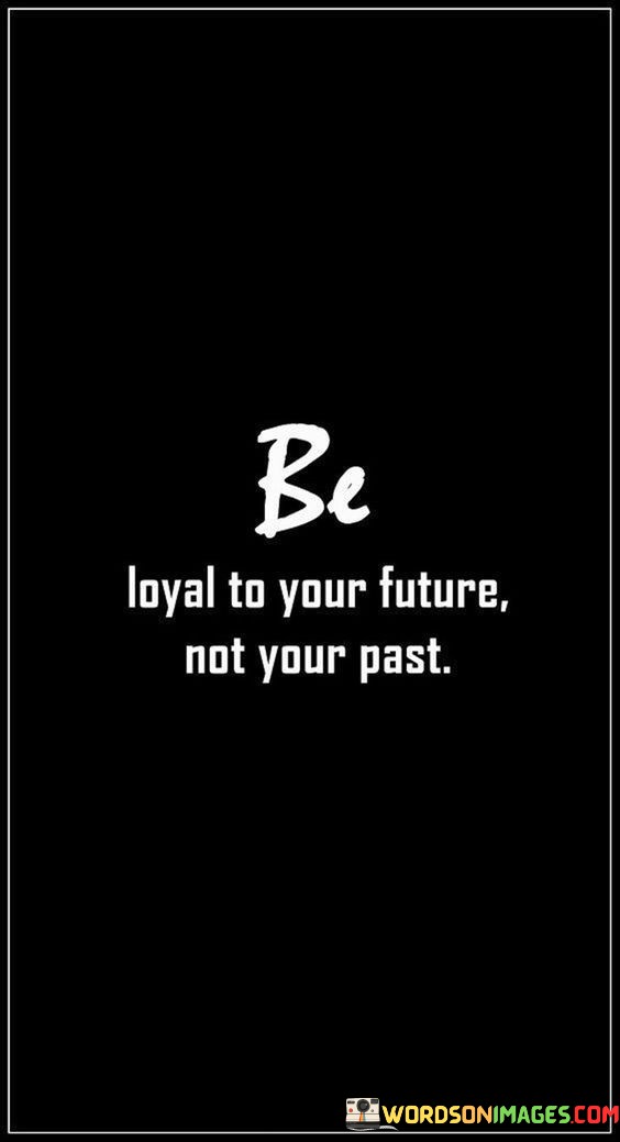 Loyalty to "future" reflects commitment to personal development. It suggests embracing opportunities for growth. "Not your past" signifies releasing limiting ties. The quote prompts a mindset shift, inviting individuals to direct their allegiance toward a fulfilling future rather than being held back by past constraints.