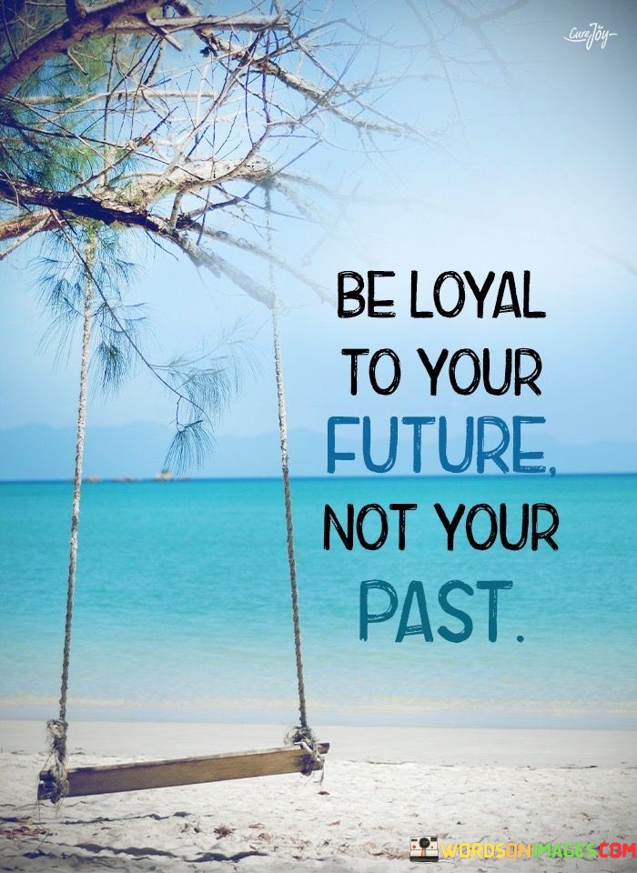 This quote emphasizes moving forward instead of dwelling on the past. In the first part, "be loyal to your future," it suggests prioritizing personal growth and progress. The second part, "not your past," implies leaving behind old patterns and mistakes.