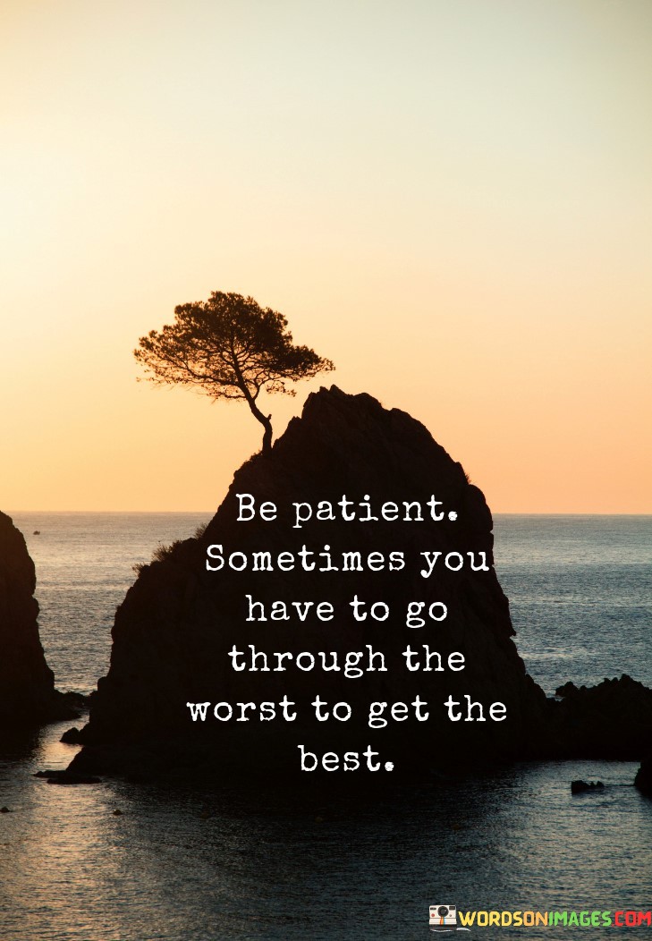 This quote emphasizes the virtue of patience and the idea that challenges and difficulties are often necessary stepping stones toward achieving one's goals. It encourages a long-term perspective, acknowledging that meaningful achievements may require enduring temporary hardships. Just as a seed must weather harsh conditions before sprouting into a thriving plant, individuals may need to persevere through tough times before reaching their desired outcomes.