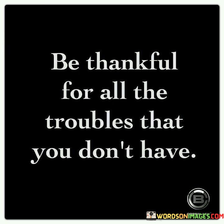 Ultimately, the quote encapsulates the idea that gratitude extends beyond just the visible aspects of our lives. By being thankful for the troubles we haven't encountered, we embrace a unique perspective on our journey, fostering a greater sense of appreciation for the harmony and balance that often go unnoticed. This approach enriches our lives with a deeper sense of contentment and a heightened awareness of our blessings.