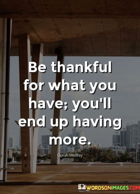 The quote underscores the transformative power of gratitude. It implies that acknowledging and valuing existing blessings creates a ripple effect, inviting more positivity into one's life. This mindset encourages individuals to shift their focus from what they lack to what they possess, fostering a sense of satisfaction that extends beyond material possessions.