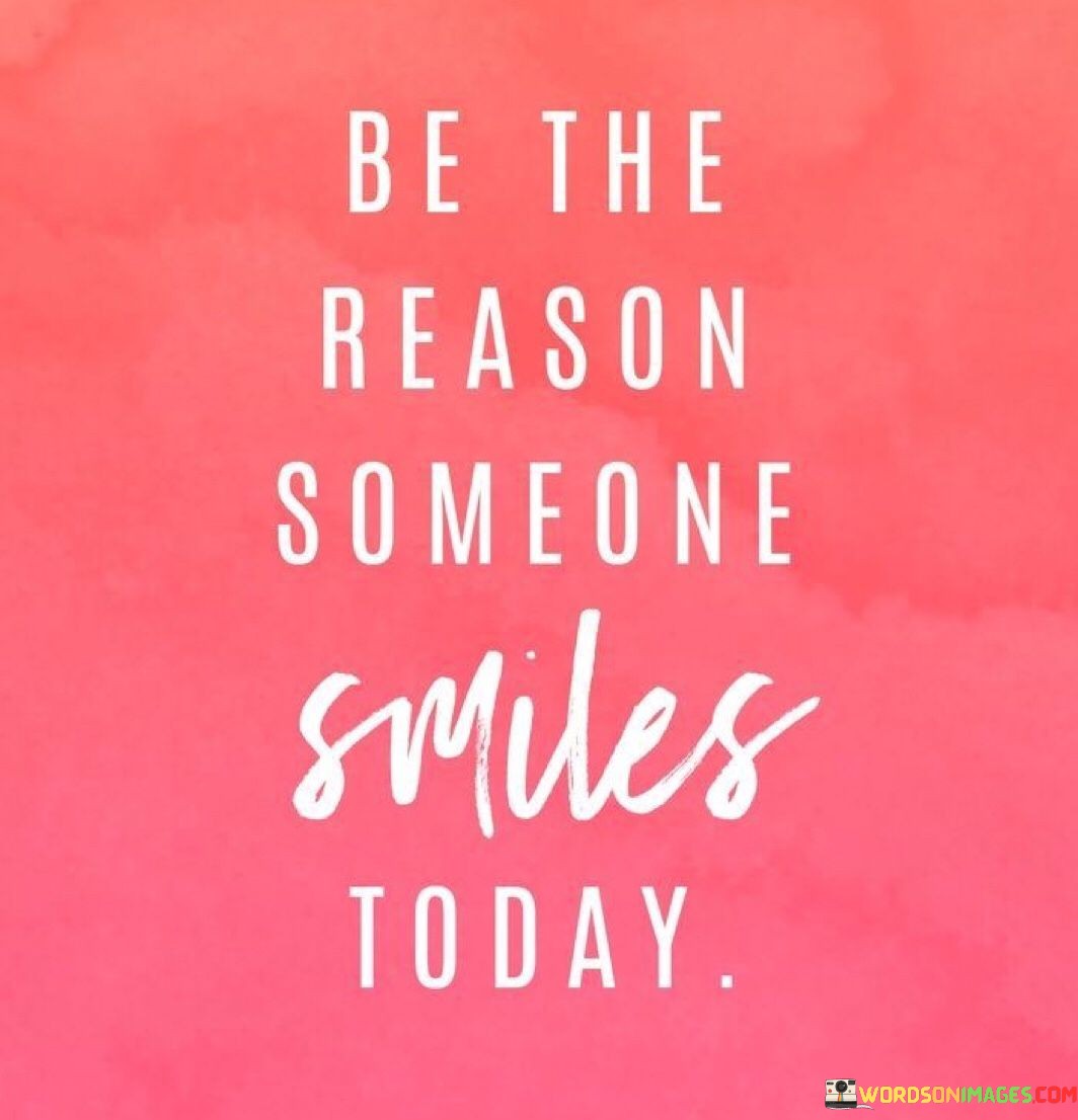 The quote encourages making a positive impact on others' lives. It suggests that you have the ability to bring a smile to someone's face, emphasizing the power of small acts of kindness and gestures. The quote underscores the importance of spreading positivity and contributing to the happiness of those around you.