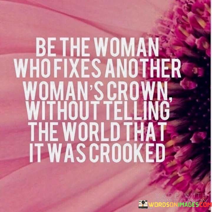 The quote promotes the idea of being a source of strength for other women, offering support and encouragement in a quiet and humble manner. It emphasizes the power of small gestures of kindness that can have a significant impact on someone else's life.