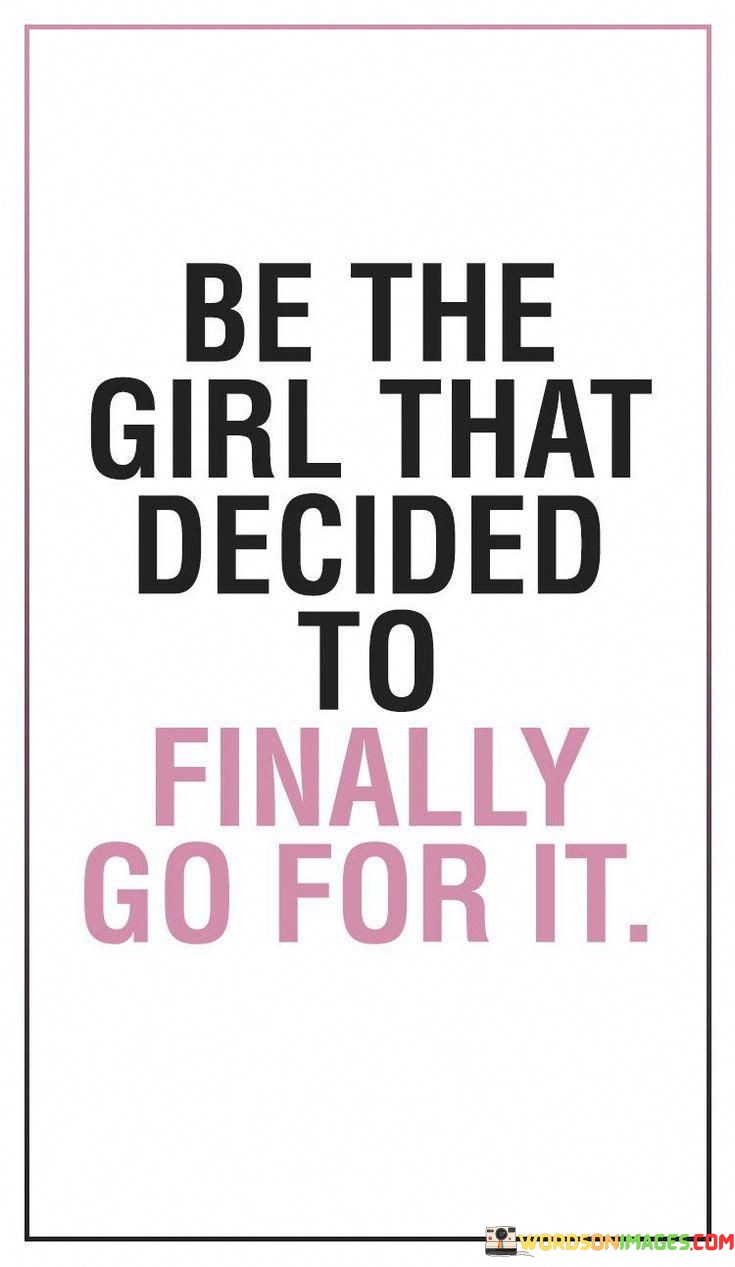 "That Decided to Finally Go for It" emphasizes the importance of taking action and not hesitating any longer. It suggests that the girl has overcome any doubts or fears and is now ready to embrace her aspirations and dreams.