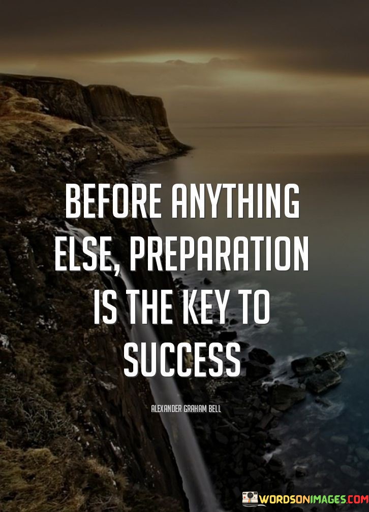 The phrase "Before anything else, preparation is the key to success" succinctly conveys the essential role of thorough preparation in achieving success.