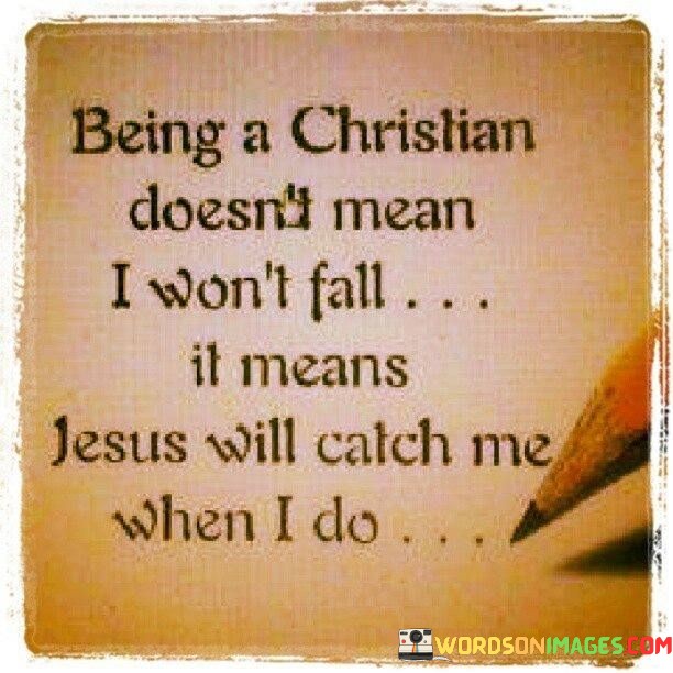 The quote "Being a Christian doesn't mean I won't fall, it means Jesus will catch me when I do" beautifully encapsulates the essence of Christian faith and the belief in God's unwavering love and grace.