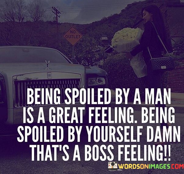 The second part shifts the focus to self-indulgence. It implies that self-spoiling indicates independence and empowerment, symbolizing a confident and capable individual.