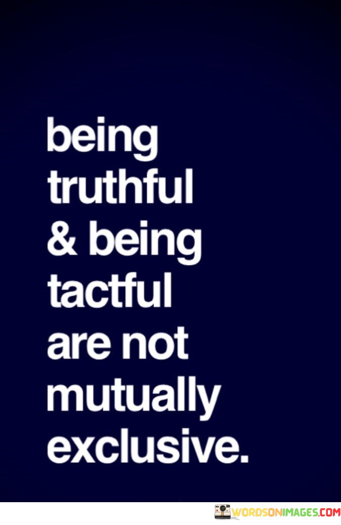 This quote emphasizes the compatibility of truth and tact. "Being truthful" underscores honesty. "Being tactful" implies sensitivity. It counters the misconception that honesty must be brutal, suggesting that delivering truths with consideration is possible, fostering effective communication without causing unnecessary harm.