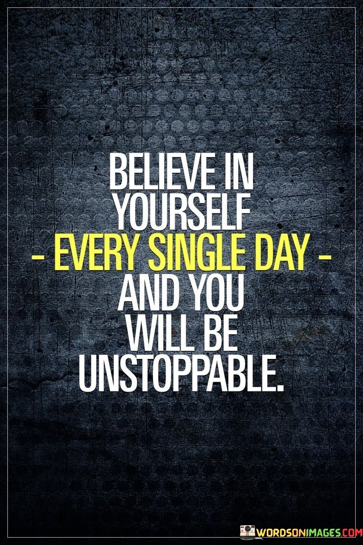 The second paragraph highlights the cumulative effect of believing in oneself daily. By consistently reinforcing positive self-belief, individuals gradually build a strong foundation of confidence and self-assurance. This continuous practice can lead to a heightened sense of personal power and resilience, as individuals develop the mindset that they are capable of overcoming any obstacle.
