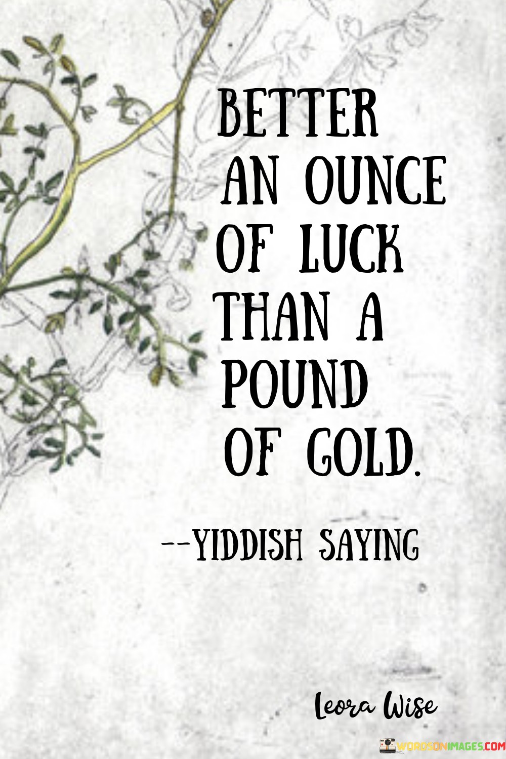 The second part, "than a pound of gold," contrasts luck with valuable assets. It implies that wealth, symbolized by gold, might pale in comparison to the positive outcomes that luck can bring. The quote encourages an appreciation for the unpredictability of fortunate events.