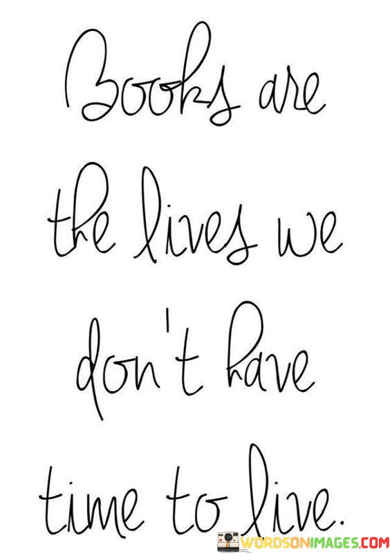 Certainly! This phrase captures the idea that books offer us experiences and insights that we might not have the time to personally live through. In the first paragraph, it means that books serve as windows into different lives and realities.