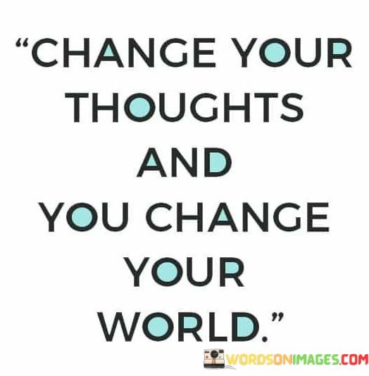 The quote, "Change your thoughts and you change your world," encapsulates the profound power of our thoughts in shaping our perception of reality and influencing the course of our lives. It highlights the transformative nature of our mindset and the impact it can have on our experiences, emotions, and actions. The quote suggests that by consciously choosing to shift our thoughts and beliefs towards more positive, empowering, and constructive perspectives, we can create a profound change in our lives and the world around us. It serves as a reminder that our thoughts are the seeds from which our reality grows, and by nurturing a mindset of optimism, gratitude, and possibility, we open ourselves up to new opportunities, growth, and a deeper sense of fulfillment and purpose. At its core, the quote emphasizes the power of our thoughts in shaping our perception of reality. Our thoughts act as filters through which we interpret events and experiences. If we harbor negative or limiting thoughts, our perception of the world may be clouded with pessimism, fear, and self-doubt. However, when we consciously choose to change our thoughts to more positive and constructive ones, we cultivate a mindset of optimism, resilience, and possibility, enabling us to perceive opportunities and potential where we may have previously seen obstacles. Moreover, the quote speaks to the concept of self-empowerment and personal responsibility. It reminds us that we have the ability to shape our thoughts and beliefs, and in doing so, we can take control of our responses to life's challenges. By choosing to focus on solutions rather than problems, on growth rather than stagnation, we can navigate life's ups and downs with greater grace and confidence. Furthermore, the quote emphasizes the connection between our thoughts, emotions, and actions. Positive and empowering thoughts are often accompanied by feelings of hope, joy, and enthusiasm, prompting us to take proactive and inspired actions in pursuit of our goals. On the other hand, negative and limiting thoughts can lead to feelings of anxiety, despair, and inertia, hindering our ability to take steps towards personal growth and achieving our aspirations. In conclusion, the quote "Change your thoughts and you change your world" underscores the transformative power of our mindset in shaping our reality and experiences. By choosing to cultivate a positive and empowering mindset, we open ourselves up to new possibilities, personal growth, and a deeper sense of fulfillment. Our thoughts are the seeds from which our reality grows, and by nurturing a mindset of optimism, gratitude, and possibility, we can create profound changes in our lives and the world around us. This quote serves as a powerful reminder of the inherent power we possess in shaping our perceptions, actions, and ultimately, the trajectory of our lives.