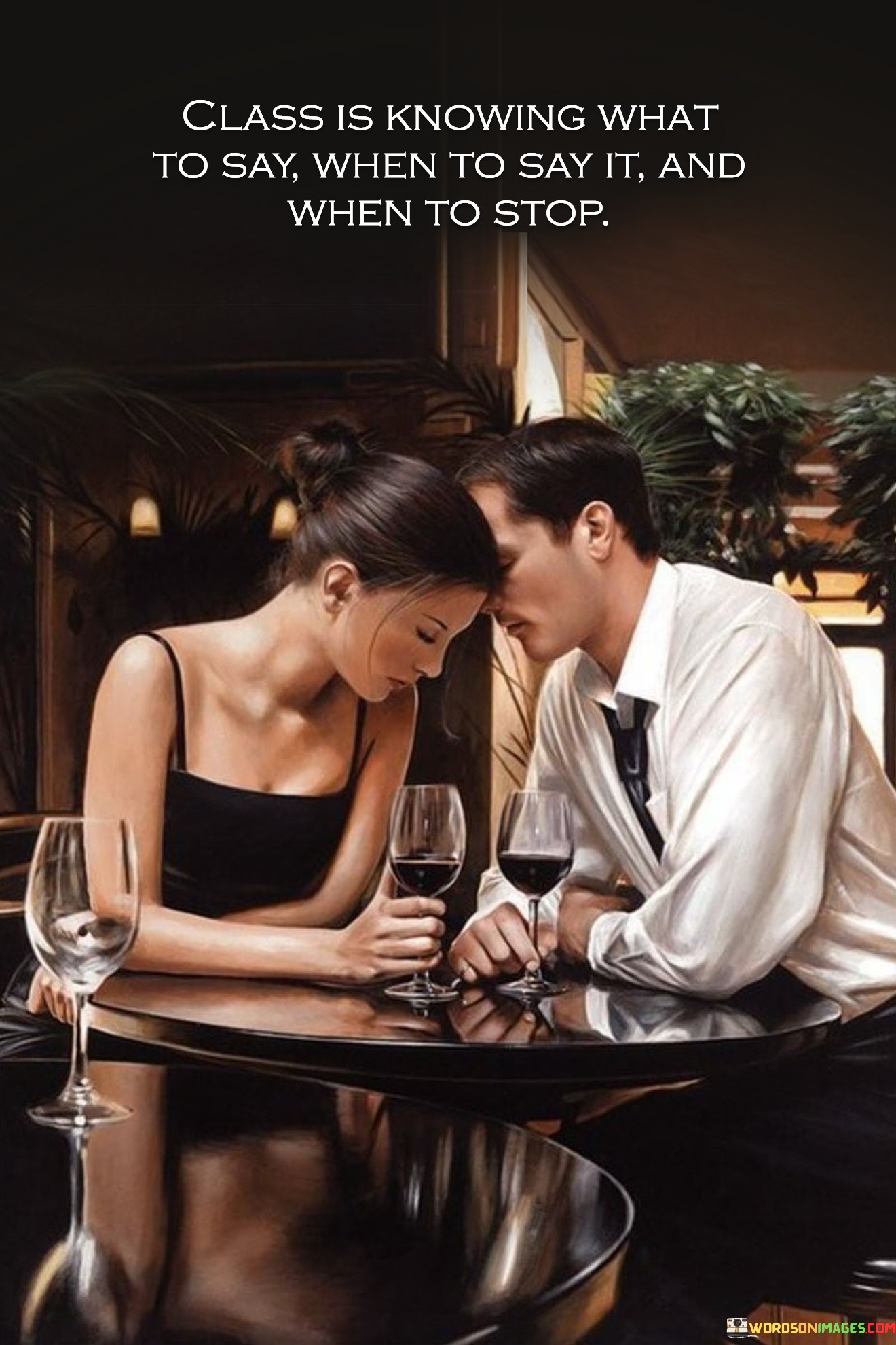 This quote encapsulates refined social awareness. "Class is knowing what to say" implies tactfulness. "When to say it" signifies timing. "And when to stop" emphasizes restraint. It underscores that true elegance involves mastering the balance between meaningful contributions, appropriate timing, and recognizing conversational limits.