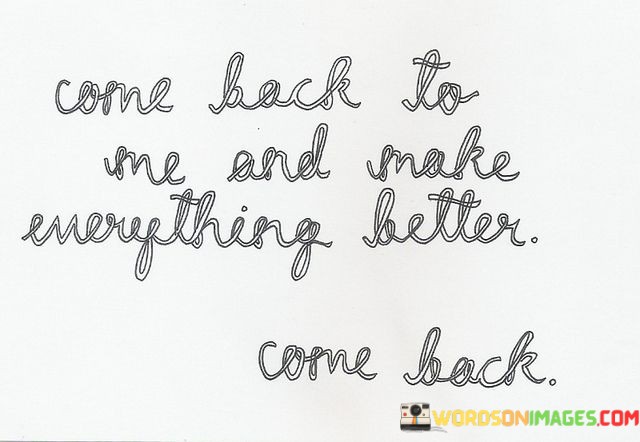 The phrase "make everything better" speaks to the transformative influence of the person's return. It implies that their presence can heal wounds, resolve issues, and restore a sense of wholeness. This longing for a positive change through someone's return resonates with our innate human desire for connection and the belief that certain individuals have the power to make our lives better.