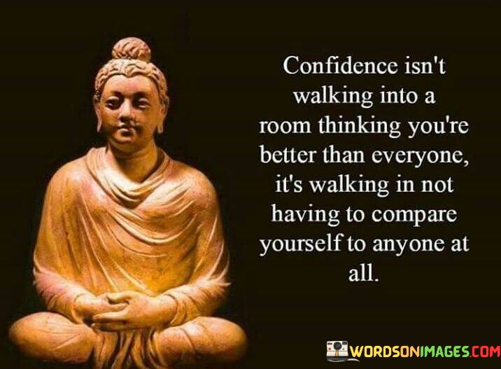 Ultimately, this quote serves as a reminder that real confidence is about being comfortable in one's own skin and not seeking validation or superiority over others, but rather embracing one's unique qualities and worth.