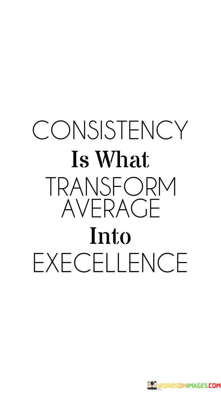 The quote encourages individuals to embrace the discipline of consistency, as it is the key to unlocking their full potential and reaching the pinnacle of excellence in their endeavors. It reminds us that sustained effort and dedication are what ultimately separate average accomplishments from truly remarkable achievements. By remaining steadfast in our pursuit of excellence, we can transform ordinary outcomes into extraordinary ones. In essence, this quote motivates us to embrace the power of consistency, recognizing its transformative impact on our journey from mediocrity to greatness.