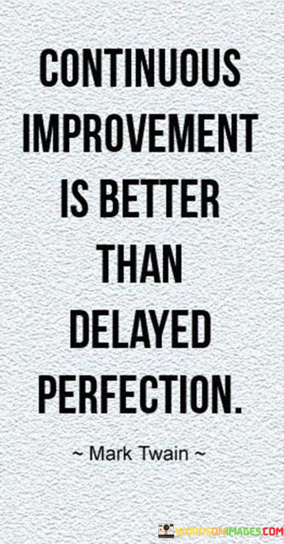 This quote highlights the value of continuous improvement over striving for perfection that may never be attained. It suggests that making consistent progress and refining one's skills or work is more beneficial than waiting for an elusive state of perfection before taking action.