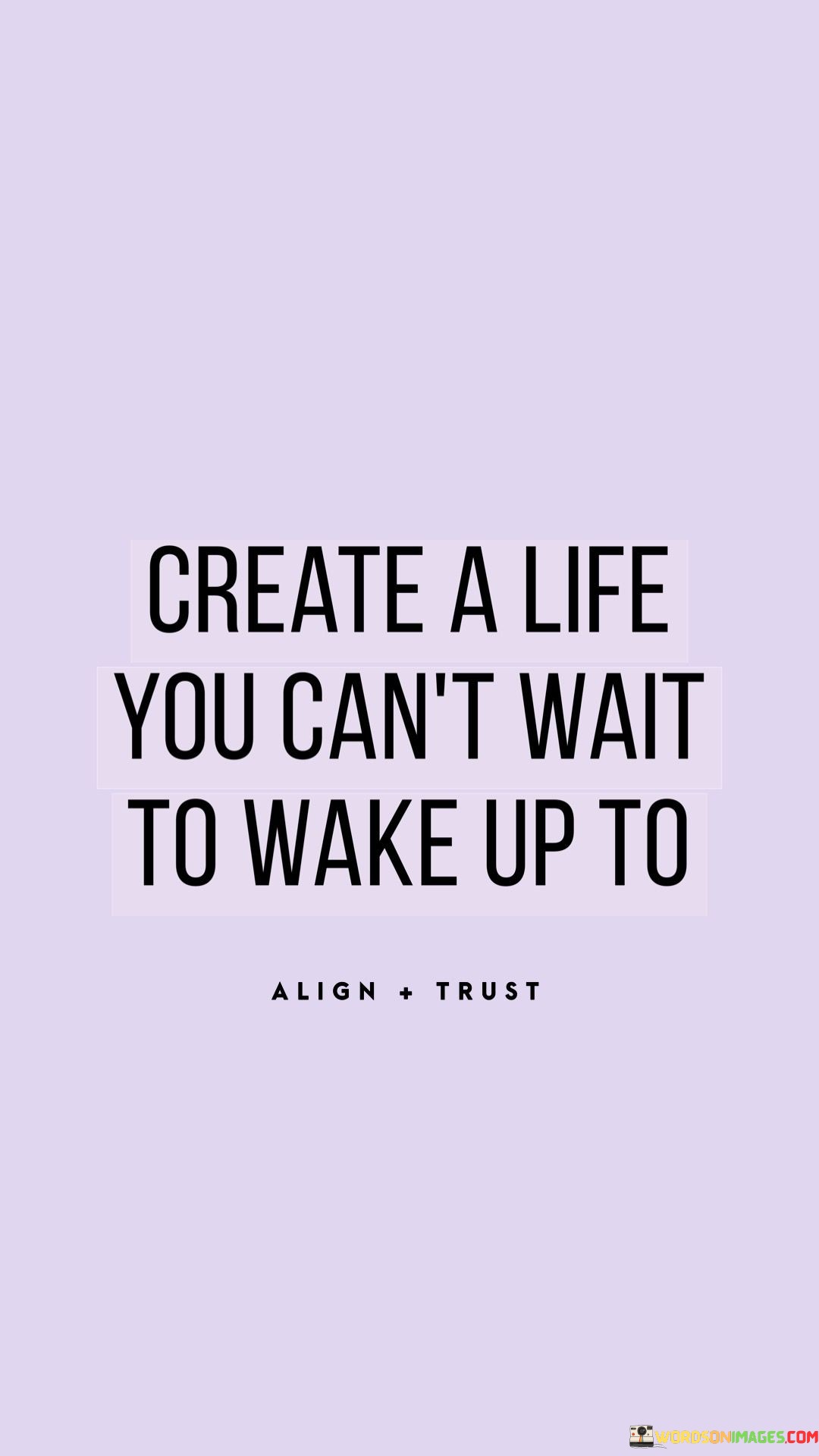 This quote encapsulates the idea of intentionally crafting a fulfilling and inspiring life. "Create a life you can't wait to wake up to" encourages proactive design of one's life, emphasizing the importance of shaping it to evoke enthusiasm and eagerness each morning.