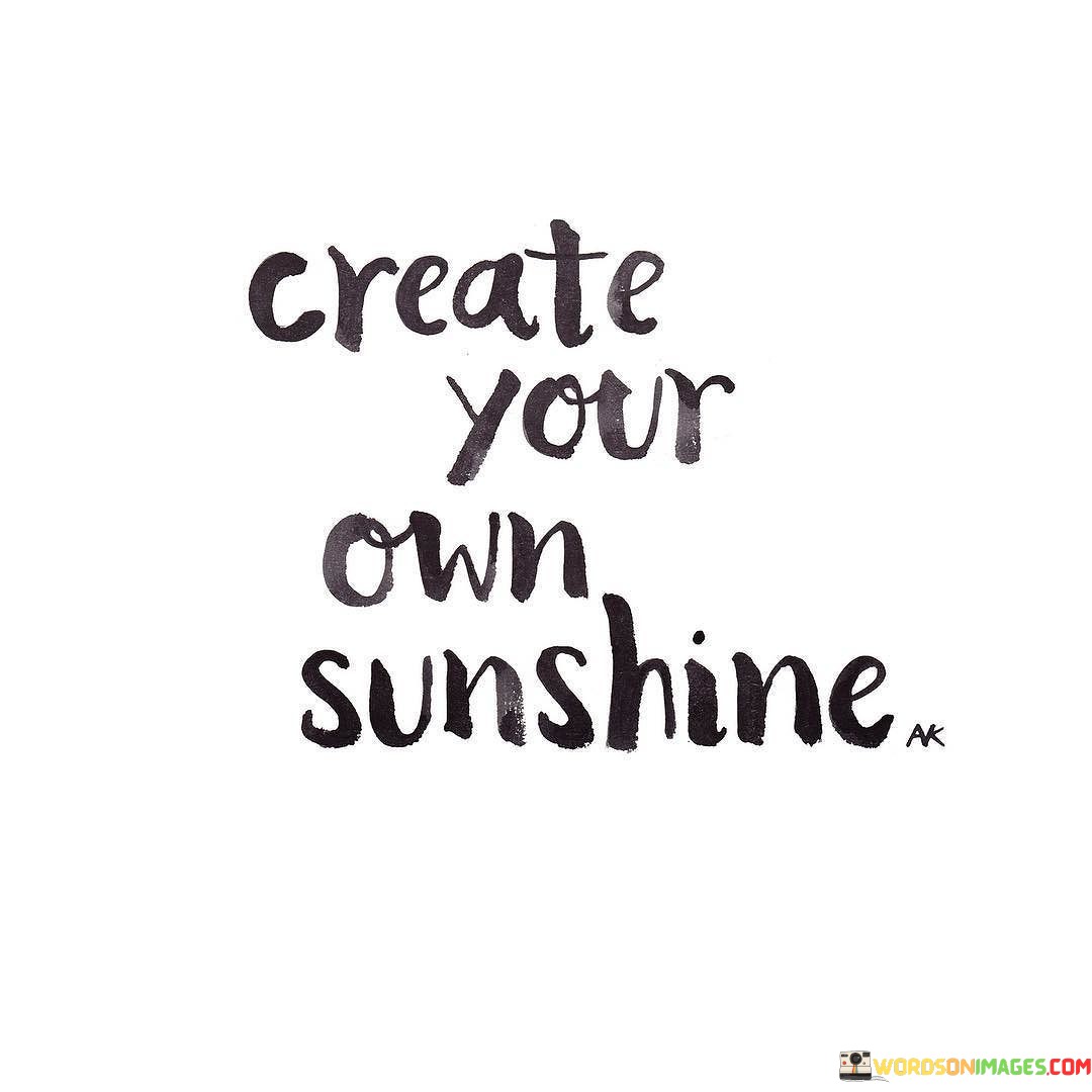 Furthermore, the quote emphasizes the idea that happiness is not solely reliant on external factors, but also stems from our internal choices and perspectives. By taking responsibility for our own well-being and actively seeking joy, we become architects of our own happiness. In essence, "create your own sunshine" urges us to be proactive in cultivating a positive and radiant life, regardless of the circumstances we find ourselves in.
