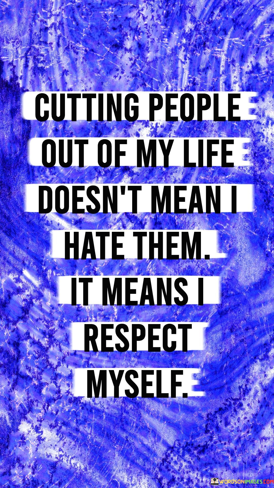 This quote highlights the concept of setting boundaries and prioritizing self-respect in relationships. In the first paragraph, "cutting people out of my life" refers to the act of distancing oneself from individuals who may be toxic or detrimental to one's well-being. This action is not rooted in hatred but rather in a desire for a healthier and more positive environment.