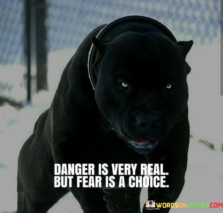 The quote encourages individuals to be mindful of their responses to danger and to take ownership of their emotions. It promotes the idea that fear can be managed through courage and self-awareness. By acknowledging fear as a choice, the quote challenges individuals to confront their anxieties and choose bravery over avoidance.