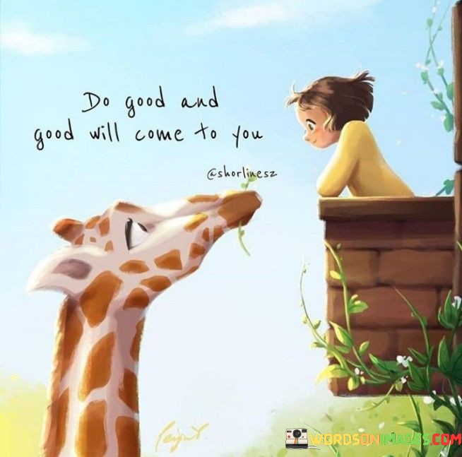 This quote suggests that performing kind actions leads to positive outcomes. It's like planting seeds of goodness. By doing good deeds, you create a cycle of positivity. The positivity you spread often returns to you in the form of good things happening in your life.