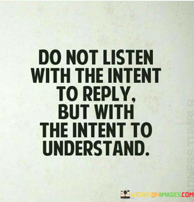 The quote emphasizes active and empathetic listening. In the first paragraph, it introduces the approach: "do not listen with the intent to reply."