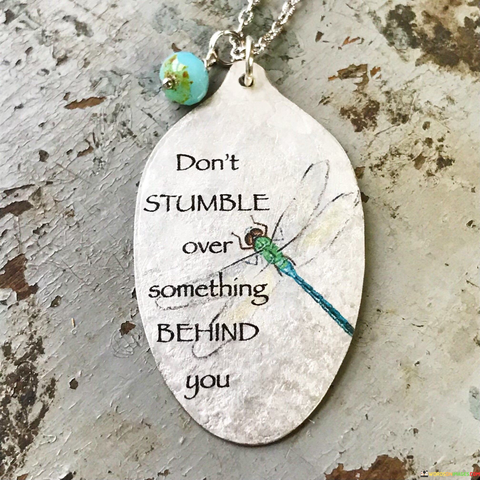 This quote advises against dwelling on the past. It suggests that instead of getting caught up in past mistakes or regrets, focus on the present and what lies ahead. This perspective encourages forward thinking and letting go of what cannot be changed.