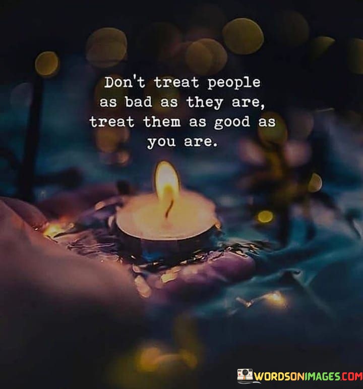 This quote advocates for compassion and kindness. It suggests that rather than responding to others based on their behavior, treat them with the same goodness you possess. This perspective encourages empathy and promotes a positive and understanding approach in interactions.