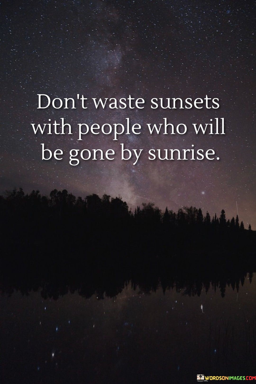 "Don't waste sunsets with people who will be gone by sunrise." This poignant quote encourages us to cherish meaningful moments and invest our time and energy in relationships that truly matter.