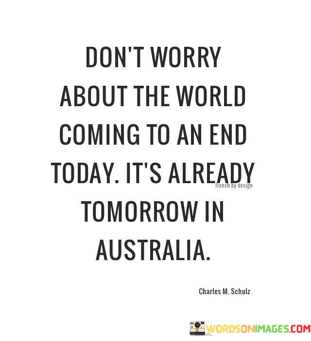 This quote is saying that sometimes we worry too much about things that might happen in the future, but we forget that time zones mean that while it might be a difficult time for us, it's already a new day for someone else.