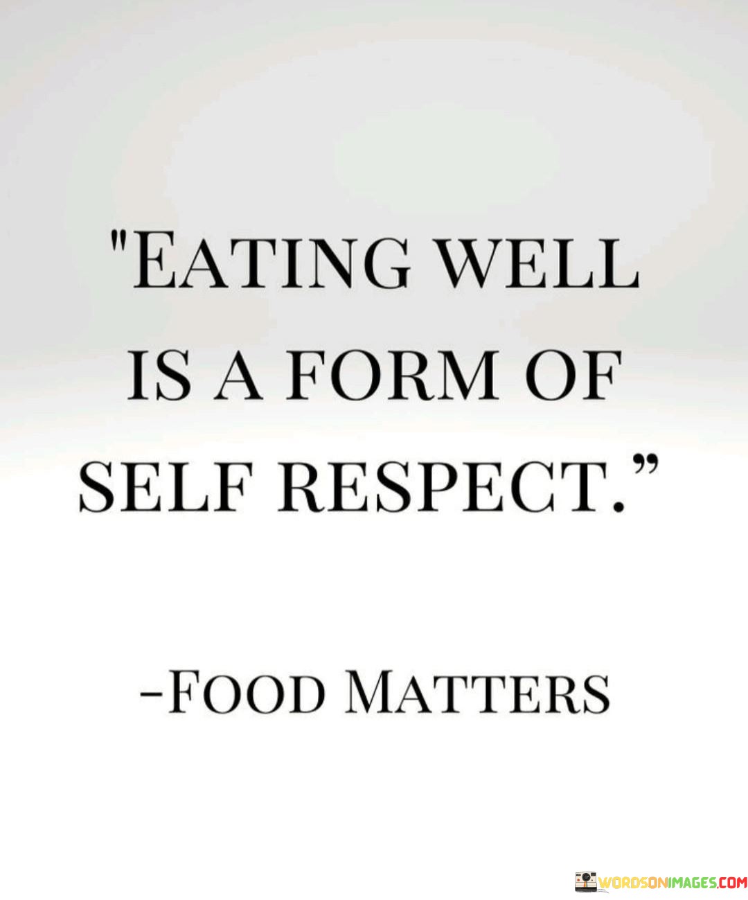 This quote highlights the connection between diet and self-esteem. It suggests that choosing to eat healthily reflects a form of self-respect and self-care. This perspective encourages individuals to consider their dietary choices as a means of valuing their own well-being.