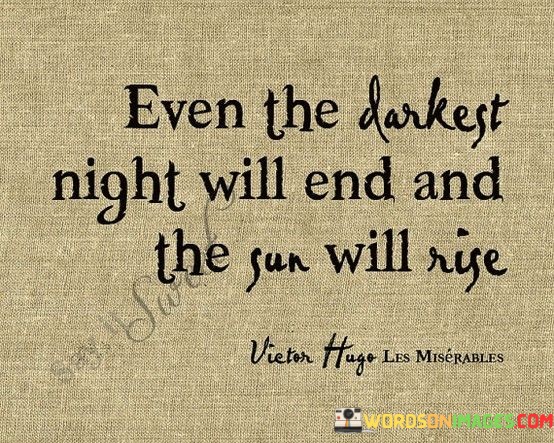 The quote carries a message of hope and resilience. It assures that even during the darkest times, there is an end in sight. The analogy of night turning to day symbolizes overcoming challenges and finding light. It's a reminder of the cyclical nature of life and the potential for better times ahead.