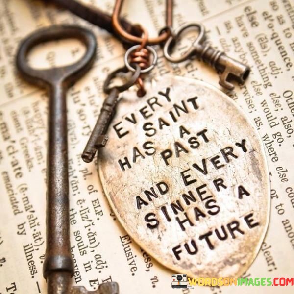 The quote "Every saint has a past, and every sinner has a future" highlights the potential for growth and transformation in every individual's journey, regardless of their past actions or behavior.