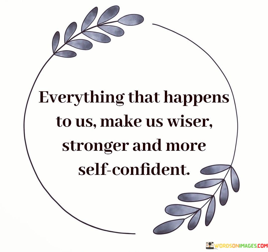 This quote reflects the idea that every experience we encounter in life contributes to our personal growth and development. Each event, whether positive or negative, carries valuable lessons that shape us into wiser, more resilient individuals, fostering increased self-confidence.