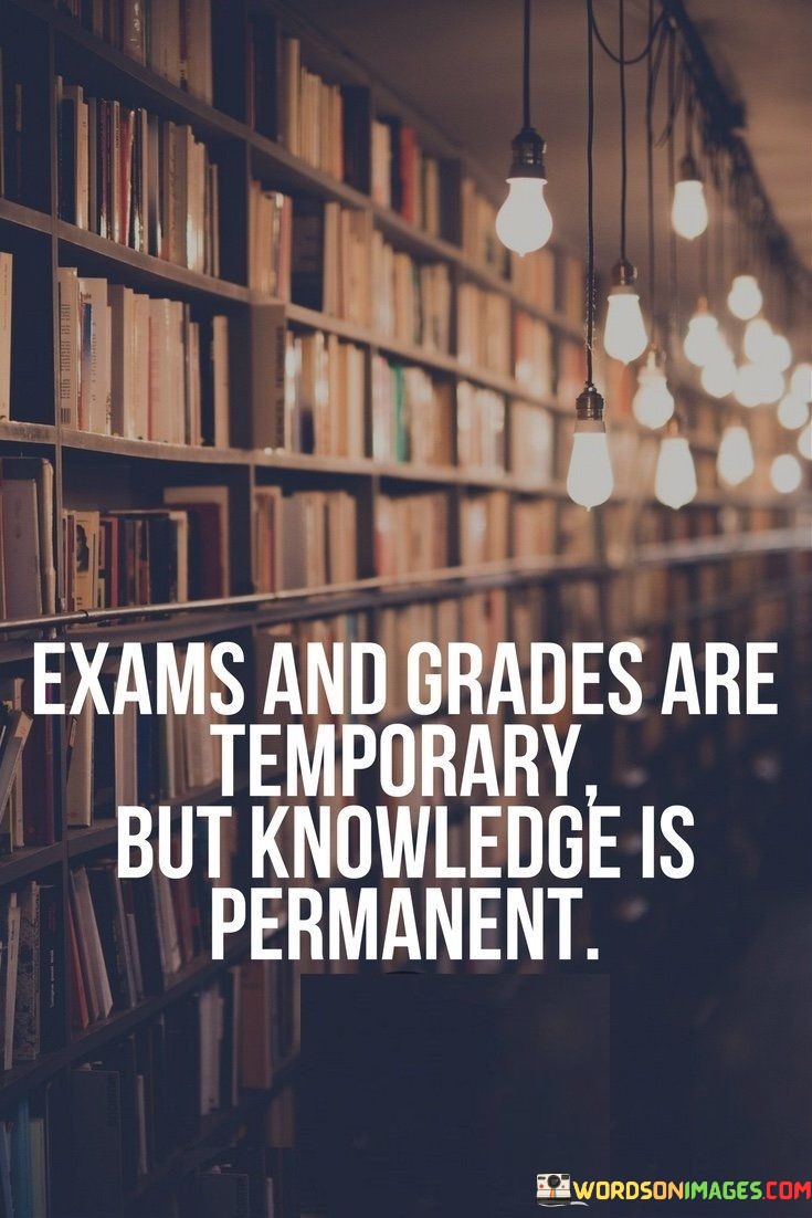 This quote emphasizes the enduring value of knowledge over temporary academic achievements. It suggests that while exams and grades have a limited significance, the knowledge gained through learning remains with individuals throughout their lives.