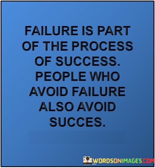 The assertion "Failure Is Part Of The Progress Of Success; People Who Avoid Failure Also Avoid Success" highlights the symbiotic relationship between failure and achievement. The first part of the statement acknowledges that failure is an intrinsic aspect of the journey towards success. It implies that setbacks provide essential lessons and contribute to personal and professional growth.